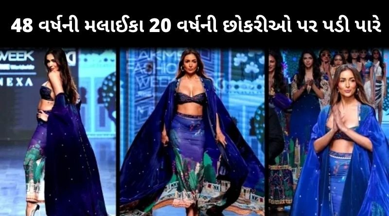 આ દરમિયાન તાજેતરમાં જ મુંબઈમાં લેક્મે ફેશન વીકનું આયોજન કરવામાં આવ્યું હતું જેમાં ઘણી સેલિબ્રિટીઝએ રેમ્પ વોક કર્યું હતું આ દરમિયાન મલાઈકા અરોરાનો એક વીડિયો સામે આવ્યો છે જે ઈવેન્ટમાં તે રેમ્પ વોક કરતી જોવા મળી રહીછે આ દરમિયાન 48 વર્ષની મલાઈકા બ્લુ પ્રિન્ટેડ ઈન્ડો વેસ્ટર્ન ડ્રેસમાં ખૂબ જ હોટ લાગી રહી છે.