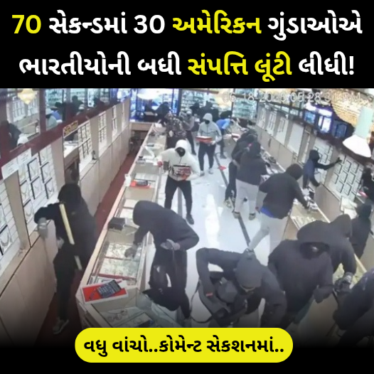 અને 70 સેકન્ડમાં, $1 મિલિયન અથવા આશરે ₹9 કરોડના દાગીના લૂંટી લીધા. 70 સેકન્ડમાં, એક ભારતીયનો આખો પરિવારનો વ્યવસાય નાશ પામ્યો. આ ઘટનાએ ફરી એકવાર અમેરિકામાં ભારતીય વેપારીઓ સામે રહેલા ગંભીર જોખમને સાબિત કર્યું છે. કાળા કપડાં અને માસ્ક પહેરેલા આ 30 અમેરિકન ગુંડાઓ કેવી રીતે દાગીનાની દુકાનમાં ઘૂસી ગયા તે જુઓ. બધા આરોપીઓ છ વાહનોમાં, મોટા સાધનોથી સજ્જ આવ્યા.