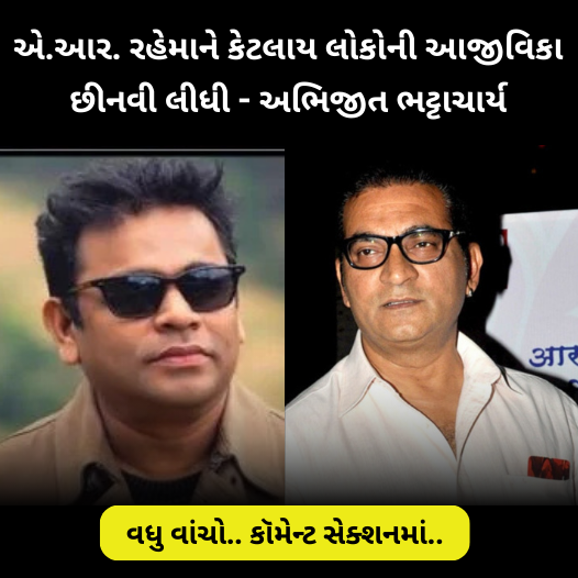 એ.આર. રહેમાનના તાજેતરના નિવેદનથી મોટો વિવાદ થયો છે, ત્યારે હવે તેમના જ ઉદ્યોગના એક સાથીએ તેમના વિશે એક ચોંકાવનારો ખુલાસો કર્યો છે. પ્લેબેક ગાયક અભિજીત ભટ્ટાચાર્યએ એ.આર. રહેમાન પર નોકરી ગુમાવવાનો અને ઘણા સંગીતકારોને તેમના ઘર છોડવા મજબૂર કરવાનો આરોપ લગાવ્યો છે. આ એક ચોંકાવનારો આરોપ છે, કારણ કે એ.આર. રહેમાન એક પ્રખ્યાત સંગીતકાર છે અને તેઓ જેને પણ પસંદ કરે છે તેને તક આપી શકે છે. નોકરી સોંપવાની તેમની સત્તામાં છે.