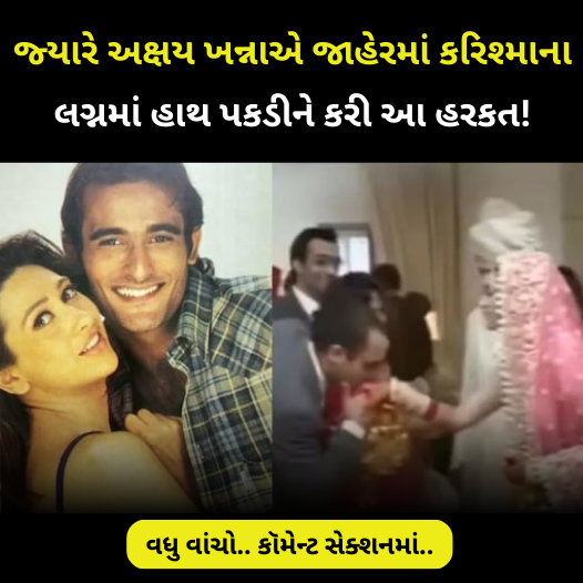 એક વીડિયો જેણે ધ્યાન ખેંચ્યું છે તે દર્શાવે છે કે અક્ષય ખન્ના કરિશ્મા કપૂર અને ઉદ્યોગપતિ સંજય કપૂરના લગ્નમાં હાજરી આપી રહ્યો છે.વીડિયોમાં, અક્ષય ખન્ના કરિશ્માના હાથ પર ચુંબન કરીને કપલને અભિનંદન આપતા જોવા મળે છે.