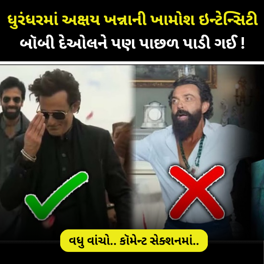 તેમનો પાત્ર ફિલ્મની ધડકન જેવો—શાંત પરંતુ આખી કહાનીને દિશા આપનાર.આ રીતે ધુરંધર માત્ર એક ફિલ્મ નહીં પરંતુ અક્ષય ખન્નાના ટેલેન્ટનો ફરી ચમકતો પુરાવો છે. દર્શકો કહી રહ્યા છે કે આ રોલ તેમના કરિયરનો “ડિફાઈનિંગ પર્ફોર્મન્સ” બની જશે.તમે શું કહેશો?શું ખરેખર અક્ષય ખન્નાએ ધુરંધરમાં એવું કંઈક કરી બતાવ્યું છે જે એનિમલમાં બૉબી દેઓલ કરતાં પણ આગળ છે?તમારી પ્રતિભાવ જરૂરથી લખો.