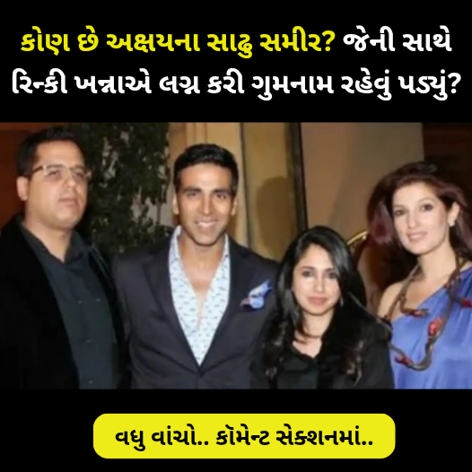અક્ષય કુમારની સાળી રિંકી ખન્ના છેલ્લા 22 વર્ષથી લાઇમલાઇટથી દૂર છે. બિઝનેસમેન સાથે લગ્ન કરીને તેમણે ગ્લેમર દુનિયાથી દૂર રહેવાનું પસંદ કર્યું. તો કોણ છે રાજેશ ખન્નાના નાના જમાઈ? અને ટ્વિંકલ ખન્નાના જીજા સમીર સરન કેટલા અમીર છે?બોલિવૂડના ખેલાડી કુમાર અક્ષય કુમાર ઇન્ડસ્ટ્રીના સૌથી બેન્કેબલ એક્ટર્સમાં ગણાય છે. હવે અક્ષયના પરિવારની નેક્સ્ટ જનરેશન પણ ફિલ્મોમાં પગ મૂકતી જોવા મળી રહી છે. અક્ષયની ભાણજી