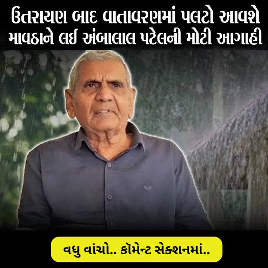 પવનની ગતિવિધી સારી રહેવાની શક્યતા રહે છે. પરંતુ રાત્રિના ભાગમાં પવનની ગતિ થોડી ઓછી રહેવાની શક્યતા રહે છે. આવતી કાલે ઉતરાયણ છે અને ઉતરાયણમાં સારો એવો પવન રહેવાની શક્યતાઓ છે. ફેબ્રુઆરી માસમાં ઠંડા પવનનો હાડ કપાવ છે. પાંચમી ફેબ્રુઆરી વચ્ચે પણ હવામાનમાં પડતો હોવાની શક્યતા ક્યાંક કમોસમી વરસાદ થવાની શક્યતા કોઈ કોઈ જગ્યાએ છે. ખેડૂતો માટે સારું રહેશે. પણ વચ્ચે વચ્ચે વાદળવાળું આવવાની શક્યતા હતા અને ક્યારેક કોઈ કોઈ જગ્યાએ માથું થવાની શક્યતા હતા વિષમ હવામાનની વિપરીત અસર પાસ ઉપર પડવાની શક્યતા બને છે ગુજરાતમાં ચોમાસું સારુંરહેવાની શક્યતા રહે છે હાલ જોઈએ તો આજે 13 જાન્યુઆરીનો દિવસ છે અને આમ જોઈએ તો આવતી કાલે છે મકર સંક્રાંતિ છે ત્યારે અનેક જે પતંગ રસિયા હોય છે તેમને પ્રશ્ન થતો હોય છે કે કાલે કેવું વાતાવરણ રહેશે અને સાથે જોઈએ તો અત્યારે ઠંડી જે તીવ્ર જોવા મળી રહી છે