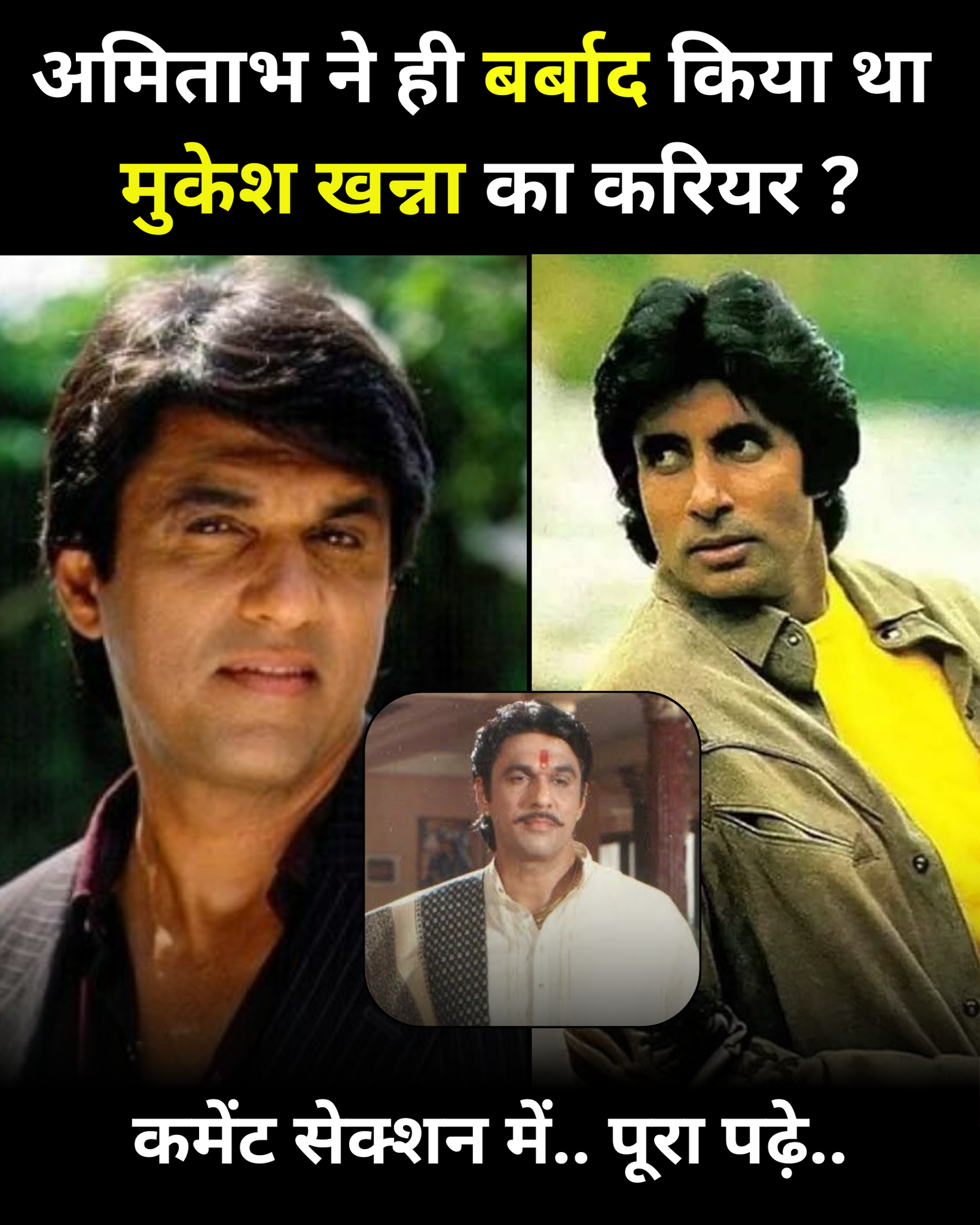 कि विनोद खन्ना अमिताभ को टक्कर दे रहे हैं और को टक्कर दे सकता है तो इंडस्ट्री में सिर्फ और सिर्फ विनोद खन्ना जैसे जानते हैं कि विनोद खन्ना की शरण में चले जाते हैं और यहीं से उनके करियर का पतन होना शुरू हो जाता है कई लोगों ने अनुमान लगाया था कि अगर विनोद खन्ना अमिताभ बच्चन इतने बड़े सुपरस्टार नहीं बनता और फिर mojito दौड़ में अमिताभ बच्चन और मुकेश खन्ना दोनों ही लाइमलाइट में बने रहते हैं एक तरफ जहां अमिताभ बच्चन फिल्म ऊपर फिर मैं किए जा रहे हैं वहीं दूसरी ओर सोशल मीडिया के माध्यम से मुकेश खन्ना अपने बालों को अपने फैंस के सामने शेयर करते ही रहते हैं