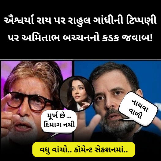 અમિતાભ બચ્ચન પોતાની પુત્રવધૂ ઐશ્વર્યા રાય વિરુદ્ધ એક પણ શબ્દ સહન કરી શક્યા નહીં. તેમણે રાહુલ ગાંધીને જવાબ આપીને ચૂપ કરી દીધા છે. રાહુલ ગાંધીએ લાખો લોકોની ભીડ સામે બચ્ચન પરિવારની પુત્રવધૂ ઐશ્વર્યા રાયને ડાન્સર કહી હતી.રાહુલના આ નિવેદન પર દેશભરમાં ઘણો હોબાળો થયો છે, પરંતુ આ દરમિયાન અમિતાભ બચ્ચને એક રહસ્યમય પોસ્ટ શેર કરી છે, જેને જોઈને લોકો કહી રહ્યા છે કે અમિતાભે રાહુલને યોગ્ય જવાબ આપ્યો છે. વાસ્તવમાં, તાજેતરમાં રાહુલે પોતાની રેલીમાં કહ્યું હતું કે ટીવી પર ઐશ્વર્યા રાય ડાન્સ કરતી જોવા મળે છે અને અમિતાભ બચ્ચન બેટ-બેલ કરતા જોવા મળે છે.