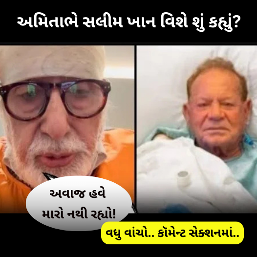 સલીમ ખાન હાલમાં હોસ્પિટલમાં દાખલ છે અને તેમના સ્વાસ્થ્ય પર નજર રાખવામાં આવી રહી છે. તેમની ગંભીર હાલતને કારણે તેમને મુંબઈની લીલાવતી હોસ્પિટલમાં દાખલ કરવામાં આવ્યા હતા. દરેક વ્યક્તિ તેમના સ્વાસ્થ્ય માટે પ્રાર્થના કરી રહ્યા છે. આ દરમિયાન, અમિતાભ બચ્ચનનું ટ્વિટ ચર્ચાનો વિષય બન્યું છે. અમિતાભ બચ્ચને ટ્વિટર પર ટ્વિટ કર્યું છે, જે પહેલા X તરીકે ઓળખાતા હતા