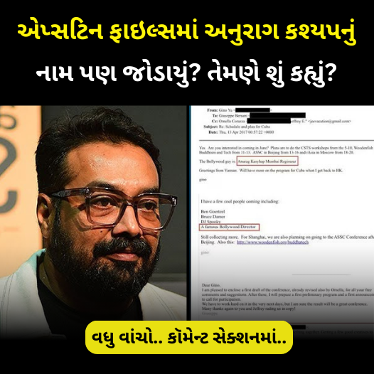 આ ફાઇલોમાં અનેક મોટા રાજકીય નેતાઓ, બિઝનેસમેન અને જાણીતી હસ્તીઓના નામો સામેલ હોવાના દાવા કરવામાં આવી રહ્યા છે. આ અટકળોની વચ્ચે ભારતીય ફિલ્મ ઇન્ડસ્ટ્રીના કેટલાક નામો પણ સોશિયલ મીડિયામાં વાયરલ થઈ રહ્યા છે, જેમાં ફિલ્મમેકર અનુરાગ કશ્યપનું નામ પણ સામેલ છે. આ મામલે હવે તેમનો રિએક્શન પણ વાયરલ થયો છે.આ કથિત દસ્તાવેજોમાં માઈક્રોસોફ્ટના સહસ્થાપક બિલ ગેટ્સથી લઈને ભારતીય-અમેરિકન લેખક દીપક ચોપરાના નામોનો પણ ઉલ્લેખ કરવામાં આવ્યો છે.