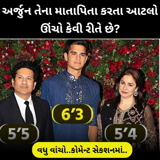 ક્રિકેટના દિગ્ગજ સચિન તેંડુલકરનો પુત્ર અર્જુન તેંડુલકર ટૂંક સમયમાં લગ્નના બંધનમાં બંધાવા જઈ રહ્યો છે. આખો પરિવાર સુંદર દેખાય છે. પરંતુ આ તસવીરોમાં એક બીજી ખાસ વાત છે જે નેટીઝન્સ પર ચર્ચા કરી રહી છે.અર્જુન તેંડુલકર આટલો ઊંચો કેવી રીતે છે? માસ્ટર બ્લાસ્ટર સચિન તેંડુલકરની ઊંચાઈ લગભગ 55 વર્ષની છે, જ્યારે તેની પત્ની અંજલિની ઊંચાઈ 53 થી 54 વર્ષની વચ્ચે છે. આશ્ચર્યજનક રીતે, તેમના પુત્ર અર્જુનની ઊંચાઈ 63 વર્ષની છે, એટલે કે તે તેના માતાપિતા કરતા ઘણો ઊંચો છે.