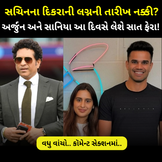 સચિન તેંડુલકરના પુત્રની લગ્ન તારીખ ફિક્સ થઈ ગઈ છે. તેંડુલકર પરિવારમાં જલ્દી શહેનાઈઓ ગુંજશે. 26 વર્ષના અર્જુન દુલ્હા બનશે. જાણો ક્યારે ગર્લફ્રેન્ડ સાનિયા ચંદોક સાથે લેશે સાત ફેરા. ભાઈના લગ્નમાં સોલો પરફોર્મન્સ આપશે સારા. ફેન્સ ખૂબ જ ઉત્સાહિત થઈ ગયા છે.માસ્ટર બ્લાસ્ટર સચિન તેંડુલકરના ઘરમાં ખુશીની લહેર છે. ક્રિકેટના ભગવાન કહેવાતા સચિન હવે પોતાના પુત્ર અર્જુન તેંડુલકરના લગ્નને લઈને ખૂબ ખુશ અને ઉત્સાહિત નજરે પડી રહ્યા છે.