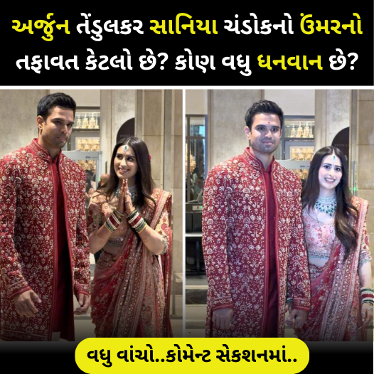 સચિન તેંડુલકરના પુત્ર અર્જુન તેંડુલકર અને સાનિયા ચંદુકના લગ્ન થઈ ગયા છે. પરંતુ એક પ્રશ્ન વાયરલ થઈ રહ્યો છે: બંનેમાંથી કોણ વધુ ધનવાન છે? ક્રિકેટ દિગ્ગજ સચિન તેંડુલકરના પુત્ર અર્જુન તેંડુલકરના લગ્નના સમાચારે ચાહકોમાં ઉત્સુકતા જગાવી છે. લોકો ફક્ત લગ્નની ઉજવણી વિશે જ નહીં પરંતુ દંપતીની જીવનશૈલી અને નેટવર્થ વિશે પણ જાણવા માંગે છે. એક તરફ, ભારતના સૌથી દિગ્ગજ ક્રિકેટરનો પરિવાર છે, અને બીજી તરફ, એક શક્તિશાળી વ્યવસાયિક સામ્રાજ્યનો એક ઉદ્યોગસાહસિક છે.