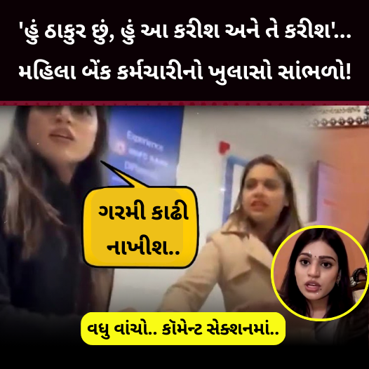પોતાના નિવેદનના અંતે તેમણે ફરી દોહરાવ્યું [સંગીત] હું ઠાકુર છું અને મને તેના પર ગર્વ છે. હા મારા શબ્દો ખોટા છે, હું જાણું છું હું જનતાની સેવા માટે બેઠી છું અને મારે મારા શબ્દોની પસંદગી ખૂબ વિચારીને કરવી જોઈએ. પરંતુ જો કોઈ વ્યક્તિ મારી પાસે આવીને એમ કહેશે કે હું તારી ગરમી ઉતારી દઈશ તો હું સહન નહીં કરું. મેં જે કહ્યું છે કે હું ઠાકુર છું, હું હજુ પણ મારા તે નિવેદન પર કાયમ છું. હું ઠાકુર છું અને આ વાત પર મને પૂરો ગર્વ છે. જય શ્રી રામ.વીડિયો વાયરલ થયા બાદ હવે મામલો બેંક મેનેજમેન્ટ અને પોલીસના હાથમાં છે. શું આ માત્ર અંગત વિવાદ હતો કે પછી કાર્યસ્થળ પર શિસ્તનો અભાવ? શું જ્ઞાતિનું ગૌરવ કોઈને બેંકની અંદર આવી ભાષાના ઉપયોગની પરવાનગી આપે છે? સવાલો ઘણા છે અને જવાબ બેંકની આંતરિક તપાસમાંથી જ મળશે.