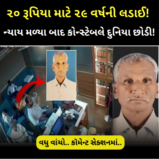 બોલો આ કેવી કમનસીબ ઘટના કે એક 20 રૂપિયાની લાંચ માટે માણસ 29 વર્ષ સુધી લડ્યો અને જ્યારે ખરેખર ખુશીની પળ આવી ત્યારે એ હાજર નહી રહ્યા તો આના વિશે તમારી સાથે વાત કરીશ મારું નામ રાજેશ શાહ છે અને તમે જોઈ રહ્યા છો ગુજરાતના સૌથી મોટા ડિજિટલ ન્યુઝ પ્લેટફોર્મ ખબરછે.comો આ આખી ઘટનાની વિગત એવી છે કે મૂળ પાટણના દેલમાલ ગામના વતની બાબુભાઈ પ્રજાપતિ અમદાવાદના વેજલપુર પોલીસ સ્ટેશનની અંદર નોકરી કરતા હતા અને એ દરમિયાન સરખેજ વિસાળ સર્કલ પાસે પોલીસ ટ્રક ડ્રાઇવરોની પાસે લાંચ લે છે પૈસા ઉઘરાવે છે એવી માહિતી એસીબી ને મળી હતી