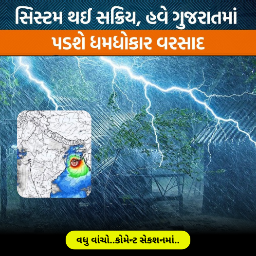 મજબૂત સિસ્ટમ આવવાની છે એ સિસ્ટમ છે એ બની ગઈ છે અને આજ સાંજ સુધીમાં એકદમ મજબૂત સિસ્ટમ અને એની મુવમેન્ટ છે આજ સાંજ સુધીમાં શરૂ થઈ જશે જેના કારણે ગુજરાતના 90 થી 95% વિસ્તારો એવા હશે કે જ્યાં વરસાદ પડશે શરૂઆતમાં ઉત્તર ગુજરાત મધ્ય ગુજરાત પૂર્વ ગુજરાત અને દક્ષિણ ગુજરાત એટલે જે ગુજરાત રીજીયન વાળો પટ્ટો છે એને આખી અસર થશે અને પછી એ સિસ્ટમ છે ધીમે ધીમે સૌરાષ્ટ્ર કચ્છને ધમરોડશે અત્યારે એવું કહેવાઈ રહ્યું છે કે સિસ્ટમ છે એનો ટ્રેક નક્કી થઈ ગયો છે અને ગુજરાત પર આવશે અને જ્યારે ગુજરાત સુધી પહોંચશે મહારાષ્ટ્ર સુધી ત્યારે એને વધારે મજબૂતી