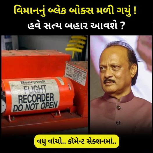 વિમાનનું બ્લેક બોક્સ મળી ગયું છે. ગઈકાલના અકસ્માત પછી આ મહત્વપૂર્ણ માહિતી હાલમાં બહાર આવી રહી છે, કારણ કે તે વિમાન દુર્ઘટનાનું સાચું કારણ જાહેર કરશે. તો, આ મોટી અપડેટ છે: જે વિમાન દુર્ઘટનામાં અજિત પવારનું મૃત્યુ થયું હતું તેનું બ્લેક બોક્સ મળી આવ્યું છે
