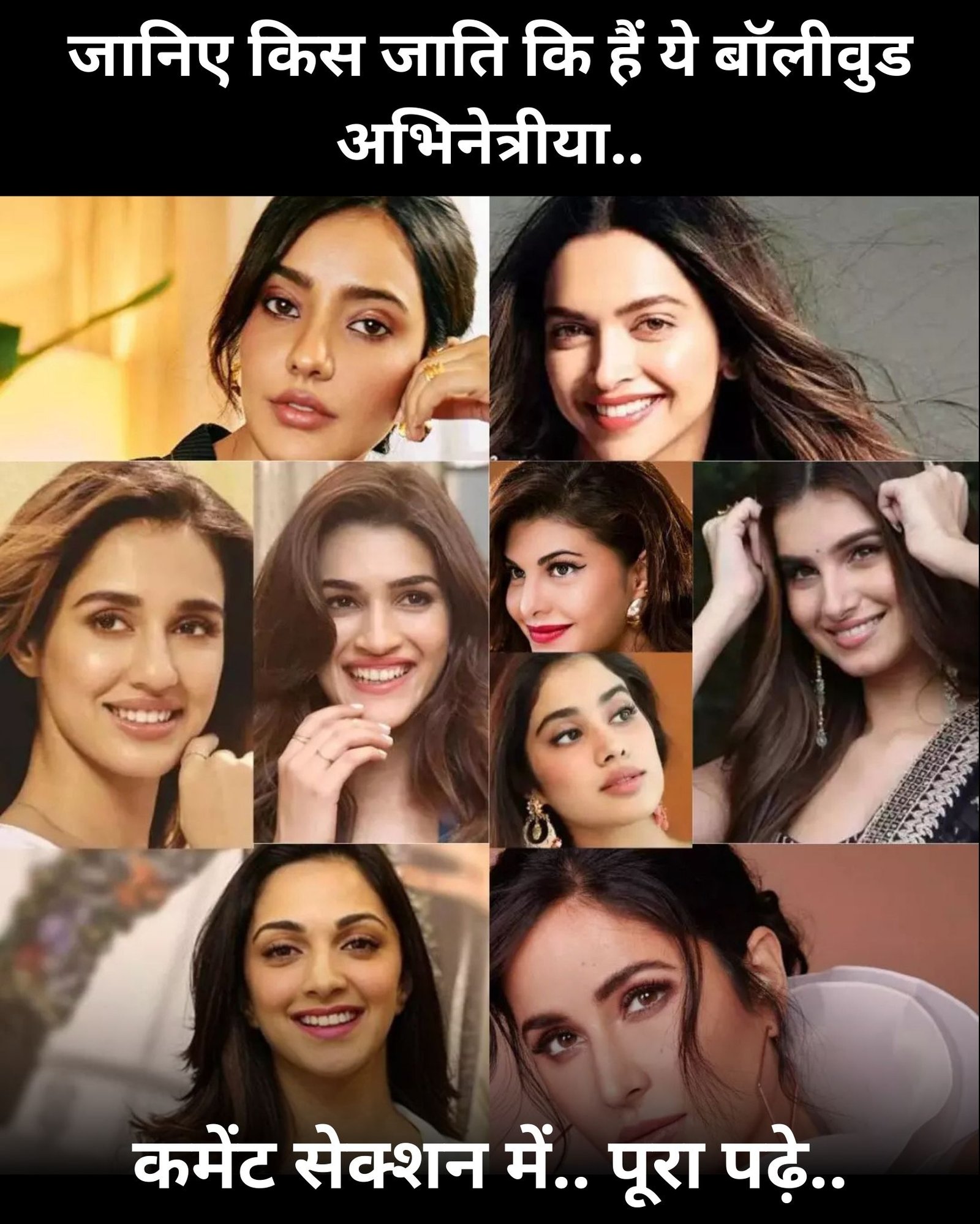 पंजाबी वैश्य बनिया जाति से बिलंग करती है नंबर 28 पर हैं काजल अग्रवाल काजल अग्रवाल का जन्म 19 जून 1985 को मुंबई महाराष्ट्र में हुआ था काजल हिंदू धर्म से आती हैं और पंजाबी वैश्य बनिया जाति से बिलंग करती है नंबर 29 पर है तारा सुतारिया तारा सुतारिया का जन्म 19 नवंबर 1995 को मुंबई महाराष्ट्र में हुआ था तारा जो रेस्टिन पारसी धर्म से आती है नंबर 30 पर है.जानवी कपूर जानवी कपूर का जन्म 26 मार्च 1997 को मुंबई महाराष्ट्र में हुआ था जानवी हिंदू धर्म से आती हैं और पंजाबी खतरी जाति से बिलोंग करती है नंबर 31 पर है रकुल प्रीत सिंह रकुल प्रीत सिंह का जन्म 10 अक्टूबर 1969 को नई दिल्ली में हुआ था रकुल प्रीत सिख धर्म से आती हैं नंबर 32 पर है मृणाल ठाकुर मृणाल ठाकुर का जन्म 1 अगस्त 1992 को नागपुर महाराष्ट्र में हुआ था मृणाल महाराष्ट्रीयन हिंदू धर्म से आती हैं नंबर 33 पर है ऐश्वर्या राय बच्चन ऐश्वर्या राय बच्चन का जन्म 1 नवंबर 1969 को बैंगलोर कर्नाटक में हुआ था ऐश्वर्या हिंदू धर्म से आती हैं और तुलु वंश जाति से बिलोंग करती है नंबर 34 पर रानी मुखर्जी रानी मुखर्जी का जन्म 21 मार्च 1978 को मुंबई महाराष्ट्र में हुआ था.