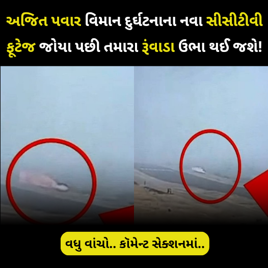 વિમાન દુર્ઘટનાના મુખ્ય વિગતો (CCTV ફૂટેજ મુજબ):ઘટનાનો સમય: સવારે 8:46 વાગ્યે.સ્થળ: બારામતી, ગોજુબાવી ગામ.દ્રશ્યો: વિમાન લેન્ડિંગના પ્રયાસ દરમિયાન જમીન પર જોરદાર પટકાયું અને સેકન્ડોમાં જ આગ અને ધુમાડાના ગોટેગોટા આકાશમાં જોવા મળ્યા.પ્રત્યક્ષદર્શીઓ: ગ્રામજનોના જણાવ્યા અનુસાર, વિમાન હવામાં અનિયંત્રિત હતું અને પટકાતા જ ભારે આગ લાગી હતી, જેના કારણે નજીક જવું પણ અશક્ય હતું. આ હૃદયદ્રાવક ઘટનાને કારણે મહારાષ્ટ્રમાં ભારે શોકની લાગણી છવાઈ ગઈ છે.