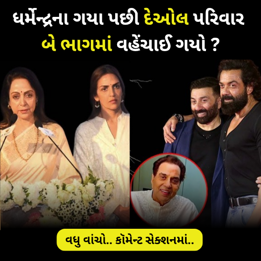89 વર્ષના ધર્મેન્દ્રના નિધન બાદ હવે દેવલ પરિવારએ કયા ત્રણ લોકોને સાઈડલાઈન કરી દીધા છે? આ ત્રણ લોકો કોઈ બીજા નહીં પરંતુ ધર્મેન્દ્રની બીજી પત્ની હેમા માલિની અને તેમની બે દીકરીઓ છે. જેમ કે તમે બધા જાણો છો કે હીમેન તરીકે ઓળખાતા ધર્મેન્દ્રના નિધનથી તેમનો પરિવાર અને તેમના ચાહકો બંને ખૂબ જ તૂટ્યા છે. ધર્મેન્દ્રના અવસાન પછી તેમના પારિવારિક સંબંધો પર પણ ઊંડો પ્રભાવ પડ્યો છે. દેવલ પરિવારે હેમા માલિની અને