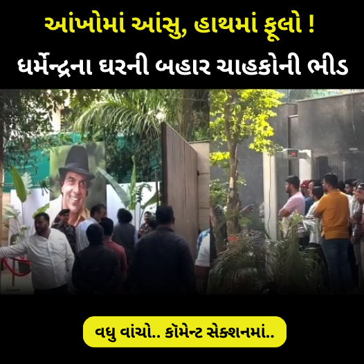 આંખોમાં આંસુ, હાથમાં ફૂલો ! ધર્મેન્દ્રના ઘરની બહાર ચાહકોની ભીડ