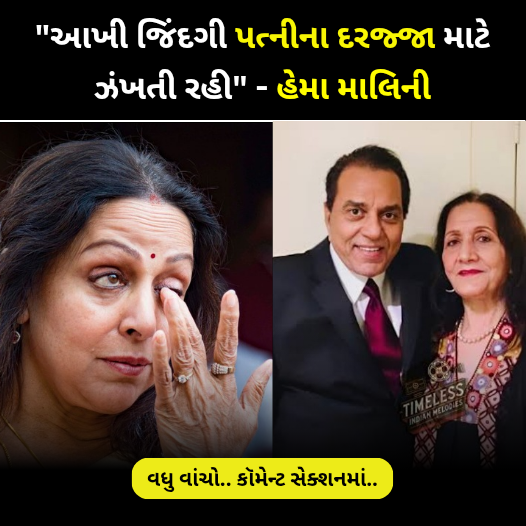 . ધર્મજી એ મારા અને મારા બાળકો માટે જે કંઈ કર્યું છે, તેનાથી હું સંતોષમાં છું. પિતાની ફરજો તેમણે હંમેશા નિભાવેલી છે. મને ક્યારેય તેમને યાદ કરાવવાની જરૂર પડી નથી.”હેમા માલિની ધર્મેન્દ્રને ખૂબ પ્રેમ કરતી હતી. પરંતુ સમાજની નજરે તેમને ઘણી ટિપ્પણીઓ સહન કરવી પડી. તેમને હોમ બ્રેકર પણ કહેવામાં આવ્યું. આ પર હેમા માલિનીએ કહ્યું હતું કે મારી પાછળ ઘણું બોલવામાં આવ્યું, પરંતુ મને ખબર છે કે મને શું ગમે છે અને હું ક્યાં ખુશ છું.