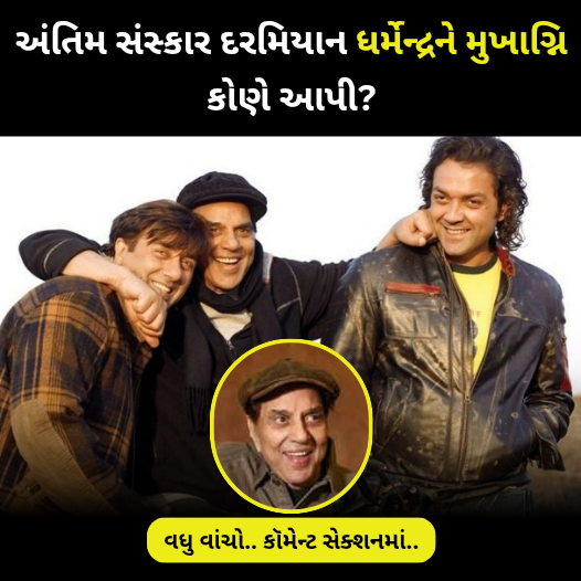 બોલિવૂડના દિગ્ગજ અભિનેતા ધર્મેન્દ્રનું અવસાન થઈ ગયું છે. 89 વર્ષની વયે તેમણે અંતિમ શ્વાસ લીધા છે. ધર્મેન્દ્ર લાંબા સમયથી બીમાર હતાં અને તેમનું બ્રેચ કેન્ડી હોસ્પિટલમાં સારવાર ચાલી રહી હતી. ત્યારબાદ તેમને ઘરે લઈ આવ્યા હતા.માહિતી મુજબ, ધર્મેન્દ્રનો અંતિમ સંસ્કાર મુંબઈના વિલે-પાર્લે શ્મશાન ઘાટ પર કરવામાં આવ્યો છે.