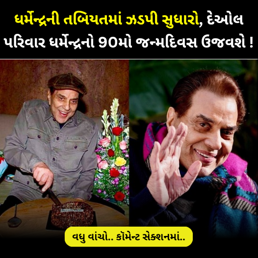 ધર્મેન્દ્રની તબિયતમાં સુધારો થઈ રહ્યો છે. ક્રિટિકલ કન્ડિશનને માત આપી તેઓ હવે જલ્દી જ પોતાનો 90મો જન્મદિવસ ઉજવશે એવી આશા છે. દેવોલ પરિવાર પર છવાયેલું ચિંતા અને તણાવનું આવરણ હવે ધીમે ધીમે દૂર થતું દેખાઈ રહ્યું છે અને ઘરમાં ફરી ખુશીની તૈયારી શરૂ થઈ ગઈ છે. દેવોલ પરિવારના એક નજીકના સૂત્રે ઘરનું વાતાવરણ અને બદલાતી પરિસ્થિતિ વિશે જાણકારી આપી છે.મળતી માહિતી મુજબ 89 વર્ષના ધર્મેન્દ્રની તબિયતમાં સતત સુધારો થઈ રહ્યો છે