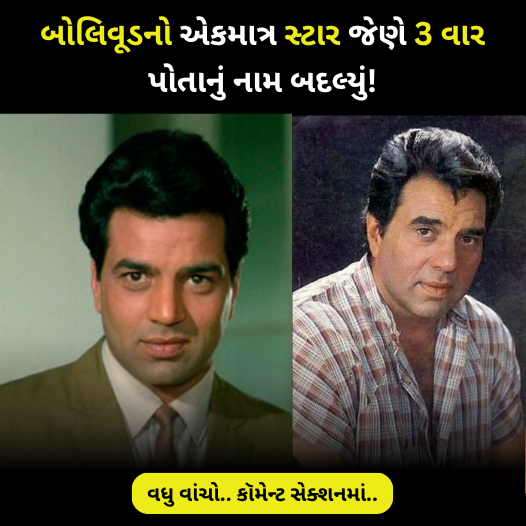 ધર્મ સિંહ દેઓલ — જેઓને આપણે ફિલ્મ ઇન્ડસ્ટ્રીમાં ધર્મેન્દ્ર તરીકે ઓળખીએ છીએ। હા, ધર્મેન્દ્રનું સાચું નામ ધર્મ સિંહ દેઓલ હતું. ફિલ્મોમાં પ્રવેશ કર્યા બાદ જ તેમણે પોતાનું નામ ધર્મ સિંહ દેઓલમાંથી બદલીને ધર્મેન્દ્ર રાખ્યું હતું. પોતાના નામમાંથી “સિંહ દેઓલ” કાઢી નાખવાનો નિર્ણય તેમણે એક ઊંડા વિચાર સાથે કર્યો હતો।તેમનો વિચાર એવો હતો કે, જ્યારે તેમના દીકરાઓ સની દેઓલ અને બોબી દેઓલ ફિલ્મ ઇન્ડસ્ટ્રીમાં આવશે, ત્યારે તેમને પોતાના નામ સાથે “સિંહ” લગાવવાની જરૂર ન પડે.