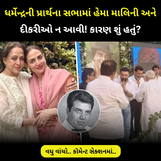 દેઓલ પરિવારે ધર્મેન્દ્રની યાદમાં શોકસભા રાખી, પરંતુ તેમાં હેમા, ઈશા અને અહાનાને આમંત્રિત ના કરવામાં આવ્યા. ધર્મેન્દ્રના નિધન બાદ તેમની બીજી પત્ની અને બંને દીકરીઓ એકલા પડી ગઈ. સૌ પ્રશ્ન કરી રહ્યા છે કે જ્યારે સાવકા ભાઈ–બહેનો વચ્ચેના સંબંધો પહેલા સુધરી ગયા હતા, ત્યારે જીવનના આ સૌથી કઠિન સમયે અંતર કેમ આવી ગયાં? સની અને બોબી એ શા માટે સાવકી માતા અને બહેનોને ભૂલી દિધા?