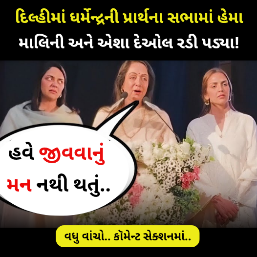 જેમાં અમિત શાહથી લઈને નિર્મલા સીતારમણ સુધી હાજર રહ્યા હતા. લોકોને સંબોધિત કરતાં હેમા માલિનીએ જણાવ્યું કે ધર્મેન્દ્રનો તેમના જીવનમાં શું પ્રભાવ રહ્યો હતો. આ પ્રસંગે હેમા સાથે અહાના અને ઈશા દેઓલ પણ નજર આવ્યા હતા. પ્રાર્થના સભાનો એક વીડિયો સામે આવ્યો છે, જેમાં હેમા માલિની પોતાનું દુઃખ વ્યક્ત કરતી દેખાય છે. હેમા માલિની સ્ટેજ પર દિવંગત અભિનેતા ધર્મેન્દ્રને યાદ કરતાં કહે છે કે તેઓ મારા માટે સંપૂર્ણ રીતે સમર્પિત હતા.