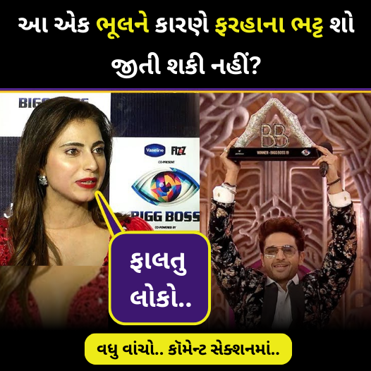 કાશ્મીરની કળી ફરહાના ભટ્ટ બિગ બોસ સીઝન 19 ની સૌથી મજબૂત ફાઇનલિસ્ટમાંથી એક હતી, જેને ટ્રોફીની હકદાર ગણવામાં આવી રહી હતી. જોકે, ટીવીના સુપરસ્ટાર ગણાતા ગૌરવ ખન્ના એ જીત મેળવી લીધી. ગૌરવ ખન્નાની સામે ઓછા વોટ્સ મળતા ફરહાના ભટ્ટ હારી ગઈ અને આ સીઝનની ફર્સ્ટ રનર-અપ બની.ફરહાનાની હારથી સોશિયલ મીડિયા પર ફેન્સ નારાજગી વ્યક્ત કરી રહ્યા છે. કેટલાક લોકો મેકર્સ પર નિશાન સાધી રહ્યા છે,