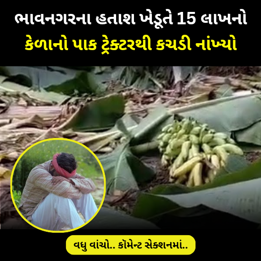 આ 18 વીઘા જમીનની અંદર જે કેળાનો પાક લીધેલો હતો એ એમણે એની પર ટ્રેક્ટર ફેરવી દીધું અને એને કારણે એમને 15 લાખ રૂપિયાનું નુકસાન થયું ગુજરાતના ભાવનગરમાં એક ખેડૂતે 18 વીઘાની અંદર કેળાની ખેતી કરેલી હતી પરંતુ ભાવ નહી મળતા લગભગ 18 વીઘા જમીનમાં જે પાક ઊભો હતો એ ઊભા પાક ઉપર ટ્રેક્ટર ફેરવી દીધું છે અને આને કારણે ખેડૂતને લાખો રૂપિયાનું નુકસાન થયું છે