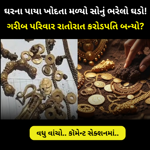અને અવાજ આવે છે થોડીવાર માટે કામ રોકી દેવાયું અને બાદમાં જ્યારે ખાડામાં નજર કરી તો આંખો ચાર થઈ ગઈ કારણ કે તેમાં અઢડક તુલા સોનું એટલે કે કરોડો રૂપિયાનો ખજાનો હતો. નમસ્કાર આપની સાથે હું મમતા ગઢવી અને ખુદકામ દરમિયાન મળી આવેલા આ સોનાની વિગતે વાત કરીએ વાત ગુજરાતી પર આમ તો સ્વપ્નનું ઘર બનાવવા લોકો ખૂબ મહેનત કરતા હોય છે