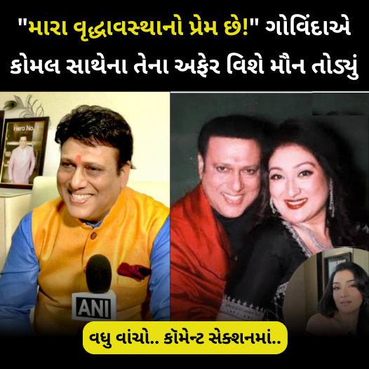 સૌ પ્રથમ તમને જણાવી દઈએ કે ગોવિંદા ગયા એક વર્ષથી એક્સ્ટ્રા મેરિટલ અફેર અને વૃદ્ધાવસ્થામાં પત્નીને ધોખો આપવાના આરોપોનો સામનો કરી રહ્યા છે. તાજેતરમાં એક પોડકાસ્ટ દરમિયાન ગોવિંદાના અફેરની ચર્ચા પર પ્રતિક્રિયા આપતા સુનિતાએ કોમલ નામની એક યુવતીનો ઉલ્લેખ કર્યો હતો. સુનિતાએ કહ્યું હતું કે તેમને કોમલ નામથી નફરત છે. સુનિતાના આ નિવેદનને ગોવિંદા સાથે જોડીને જોવામાં આવ્યું અને કહેવાયું કે કદાચ કોમલ જ તે યુવતી છે જેમની સાથે ગોવિંદાનો અફેર ચાલી રહ્યો છે.હવે સુનિતાના આ આરોપો પર ગોવિંદાએ પોતાની ચુપ્પી તોડી છે. પોતાના તાજા ઇન્ટરવ્યૂમાં 63 વર્ષની ઉંમરે અફેરની ચર્ચાઓ પર ગોવિંદાએ પ્રતિક્રિયા આપી છે.