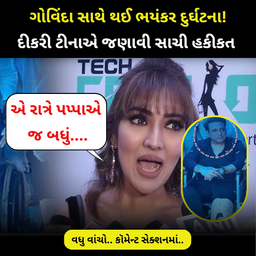 હું બહુ ગભરાઈ ગઈ હતી, પણ તેમને હોસ્પિટલ સુધી હું જ લઈ ગઈ હતી.”આ ઘટનાએ ટીનાને અંદરથી તોડી નાખી હતી.હાલની સ્થિતિની વાત કરીએ તો ગોવિંદા હવે સંપૂર્ણ રીતે સાજા છે અને 6 વર્ષ બાદ પોતાની નવી ફિલ્મ “દુનિયાદારી” દ્વારા બોલિવૂડમાં ધમાકેદાર વાપસી માટે તૈયાર છે.જોકે ગોળી કેવી રીતે લાગી – અકસ્માતે કે પછી કંઈ બીજું કારણ હતું – તેની સ્પષ્ટ માહિતી હજુ સુધી બહાર આવી નથી. એવું માનવામાં આવે છે કે આ એક અકસ્માત હતો. ટીનાએ પણ આ મુદ્દે વધુ કંઈ બોલવાનું પસંદ કર્યું નહોતું.