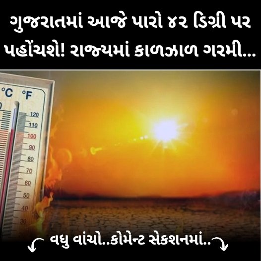ગુજરાતમાં આજે ગરમીનો પારો અતિશય વધવાનો છે એટલે ગઈકાલે પણ હિટવેવની આગાહી આજે પણ હિટવેવ અને પારો 42 ડિગ્રી ને પાર પહોંચે એવી સંભાવના છે. હવામાન વિભાગે જે આગાહી કરી છે એ પ્રમાણે તમને બતાવું કે તમે જો બહાર નીકળો છો તો તમારા સીટીમાં કેટલી મેક્સિમમ ગરમી પડવાની છે એની વાત કરીએ અમદાવાદમાં મેક્સિમમ 41.4 4 ગ્રી એટલે કાલે આપણે જોયું હતું