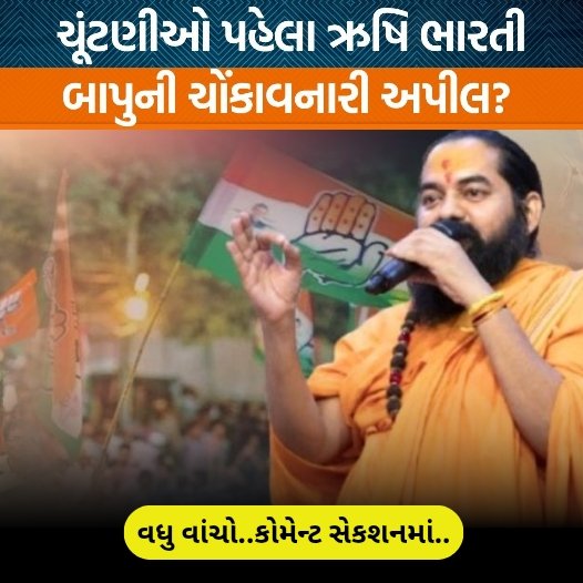 ત્યારે મહામંડલેશ્વર ઋષિભારતી બાપુએ લોકોને વિડીયો બનાવીને અપીલ કરી છે કે જે ઉમેદવાર રોટી કપડા અને શિક્ષણ માટે કામ કરતો હોય તેવા ઉમેદવારોની પસંદગી કરજો. એવા લોકોની પસંદગી ના કરતા કે જે એક સમાજને બીજા સમાજની સામે લાવી વર્ગ વિગ્રહની સ્થિતિનું નિર્માણ કરે તો આજે આપણે આ વીડિયોમાં જાણીશું ઋષિભારતી બાપુની અપીલ વિશે જેનાથી રાજકારણમાં ગરમાઓ આવી ગયો છે. નમસ્કાર જમાવટ સાથે હું છું પાર્થ. મહામંડલેશ્વર ઋષિભારતી બાપુનો એક વિડીયો સામે આવ્યો છે જેમાં તેમણે આગામી સ્થાનિક સ્વરાજ્યની ચૂંટણીઓમાં મતદાનને લઈને લોકોને અપીલ કરી છે જેના કારણે રાજકારણમાં ગરમાઓ આવી ગયો છે.