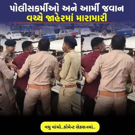 કહે છે અને રોફ જમાવે છે અને પોલીસની કામગીરીમાં અડચણ કરે છે. આ દરમિયાન વાત ઉગ્ર બને છે અને આર્મી જવાન છે તે ગાળાગાળી કરે છે અને ત્યારબાદ મારામારી થાય છે અને છ થી સાત પોલીસ કર્મીઓ ત્યાં આવી જાય છે અને આર્મી જવાનને પોલીસને ગાડીમાં બેસાડવાના પ્રયાસ કરે છે જો કે સાત સાત પોલીસ કર્મીઓ હોવા છતાં પણ તેઓને આર્મી જવાને ગાડીમાં બેસાડવા માટે આંખે પાણી લાવી દીધા હતા. આ સમગ્ર બનાવ અંગે હિંમતનગર એ ડિવિઝનમાં ફરિયાદ નોંધવામાં આવી છે. ઉલ્લેખનીય છે કે જ્યારે જ્યારે ટ્રાફિકની સ્પેશિયલ ડ્રાઈવ રાખવામાં આવતી હોય છે ત્યારે સુડી વચ્ચે સોપારી જેવી