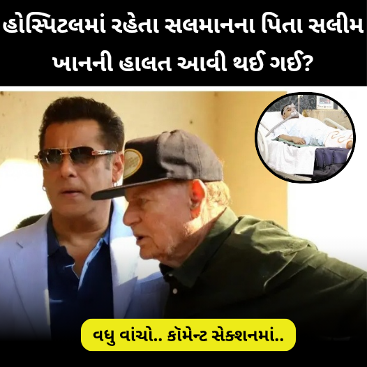 બોલીવુડના ભાઈજાન સલમાન ખાનના પિતા અને હિન્દી સિનેમાના પ્રખ્યાત લેખક સલીમ ખાનની તબિયત લથડતાં તેમને તાજેતરમાં હોસ્પિટલમાં દાખલ કરવામાં આવ્યા હતા. આ સમાચારથી માત્ર ખાન પરિવાર જ નહીં પરંતુ સમગ્ર ફિલ્મ ઉદ્યોગ અને ચાહકો પણ ચિંતિત હતા. અહેવાલો સૂચવે છે કે સલીમ ખાનને મગજમાં નજીવો રક્તસ્રાવ થયો હતો. તેમને તાત્કાલિક મુંબઈની લીલાવતી હોસ્પિટલમાં દાખલ કરવામાં આવ્યા હતા અને ICUમાં ડોકટરોની ટીમ દ્વારા તેમની દેખરેખ રાખવામાં આવી હતી.