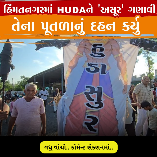 તો વિજયાદશમીના પાવન પર્વ નિમિત્તે હિંમતનગર નજીકના 11 ગામોના ખેડૂતોએ હુડા એટલે કે હિંમતનગર અર્બન ડેવલપમેન્ટ ઓથોરિટીના જમીન કપાતના નોટિફિકેશન વિરુદ્ધ ઉગ્રપણે વિરોધ નોંધાવ્યો હતો. ભૂડાને અસુર ગણાવી તેના જ પૂતળાનું દહન કરી ખેડૂતોએ રોજી રોટીનું જોખમ ઊભું કરતા આ નિર્ણયનો વિરોધ કર્યો છે.