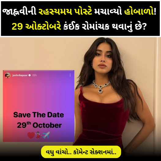 એવી ચર્ચા છે કે મોટી બહેન અંશુલાની સગાઈ પછી હવે જાન્વીએ પણ ઘર વસાવવાનો નિર્ણય લઈ લીધો છે અને ટૂંક સમયમાં સગાઈ પણ કરવા જઈ રહી છે. આ તમામ અટકળોની શરૂઆત ત્યારે થઈ જ્યારે જાન્વી કપૂરે પોતાના Instagram સ્ટોરીમાં એક પોસ્ટ શેર કરી, જેમાં લખ્યું હતું – “Save the Date 29th October.” સાથે જ તેણે હાર્ટ ઇમોજી, નાચતી યુવતીનો ઇમોજી અને વિમાનનો ઇમોજી પણ ઉમેર્યો હતો.આ પોસ્ટ જોયા પછી સોશિયલ મીડિયા પર ચર્ચાનો માહોલ ગરમાયો છે કે જાન્વી કપૂર 29 ઑક્ટોબરના દિવસે સગાઈ કરવા જઈ રહી છે.