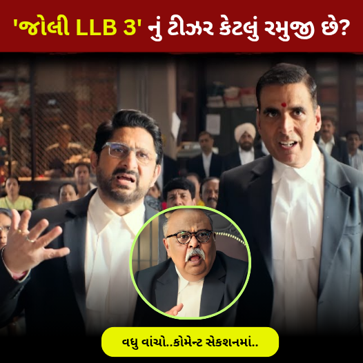 ઘણા સમયથી લોકોએ સારી કોમેડી ફિલ્મ જોઈ નથી. પરંતુ હવે આવી ફિલ્મની રાહ જોનારાઓ માટે એક મોટી ખુશખબર આવી છે. થોડા સમય પહેલા, નિર્માતાઓએ જોલી એલએલબી 3 નું ટીઝર રિલીઝ કર્યું હતું. ફિલ્મમાં અક્ષય કુમાર અને અરશદ વારસી મુખ્ય ભૂમિકામાં જોવા મળે છે. આ કોર્ટરૂમ ડ્રામામાં કોમેડી તેમજ ઘણો સંઘર્ષ જોવા મળે છે. રમુજી સંવાદોથી લઈને રસપ્રદ દ્રશ્યો સુધી, આ 11/2 મિનિટના ટીઝરમાં બધું જ જોવા મળે છે. ટીઝરમાં જોવા મળે છે કે અક્ષય અને અરશદ વારસી કોર્ટમાં એકબીજા સામે કેસ લડી રહ્યા છે. ફિલ્મમાં અક્ષય અને અરશદ બંનેનું નામ જોલી એલએલબી છે.