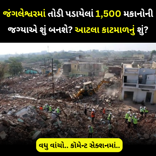 રાજકોટના જંગલેશ્વરમાં બે દિવસ દરમિયાન તોડી પડાયેલાં આ પ્રકારનાં મકાનોની સંખ્યા હવે વધીને 1,504 થઈ ગઈ છે.રાજકોટ શહેરમાં જંગલેશ્વર વિસ્તારના રસ્તા પરનાં કથિત દબાણો તેમ જ આજી અને ખોખડદડી નદીના પટ અને કાંઠા પર કથિત અનધિકૃત રીતે ચણવામાં આવેલાં મકાનોને પાડી નાખવા માટે રાજકોટ મહાનગરપાલિકાએ સોમવારે શરૂ કરેલું અભિયાન મંગળવારે પણ યથાવત્ રહ્યું હતું.દિવસ દરમિયાન મહાનગરપાલિકાએ