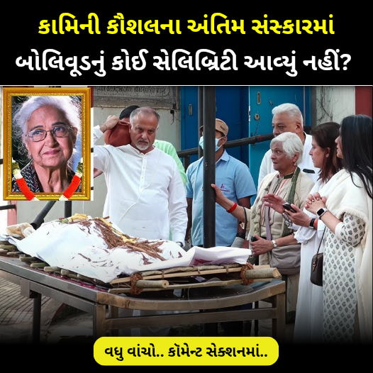 જરે પડે છે. ધ્યાન આપવા જેવી વાત છે કે કામિની કૌશલના અંતિમ સંસ્કારમાં ફિલ્મી દુનિયાનો એક પણ સેલેબ હાજર દેખાયો નહોતો. શાંતિપૂર્ણ વાતાવરણમાં પોતાના જ પરિવારજનોની હાજરીમાં કામિનીજી पंचતત્વમાં વિલીન થઈ ગઈ.કામિની કૌશલને શાહિદ કપૂરની ફિલ્મ ‘કબીર સિંહ’માં દાદીના પાત્રથી ખુબ લોકપ્રિયતા મળી હતી અને લોકો દ્વારા તેમની