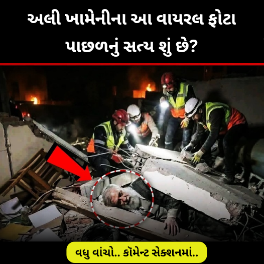ઈરાનના સર્વોચ્ચ નેતા આયાતુલ્લા અલી ખામેનીના મૃત્યુ પછી, સોશિયલ મીડિયા પર એક ફોટો ઝડપથી વાયરલ થઈ રહ્યો છે. તેમાં ઈરાનના સર્વોચ્ચ નેતા આયાતુલ્લા અલી ખામેનીને કાટમાળ નીચે દટાયેલા બતાવવામાં આવ્યા છે, અને બચાવ કાર્યકરો નજીકમાં તેમને બચાવવાનો પ્રયાસ કરી રહ્યા છે. આ તસવીરને આ દાવા સાથે શેર કરવામાં આવી રહી છે