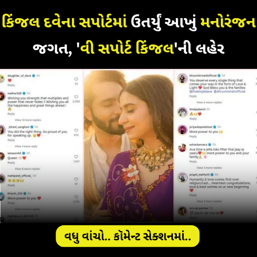ગુજરાતની લોકપ્રિય સિંગર અને ‘ચાર ચારબંગડીવાળી’ ફેમ કિંજલ દવે અત્યારે તેના અંગત અને વ્યવસાયિક જીવનના ઉતાર-ચઢાવને કારણે ચર્ચામાં છે. આ મુશ્કેલ સમયમાં કિંજલ દવે એકલી નથી, પરંતુ સમગ્ર ગુજરાતી ફિલ્મ ઇન્ડસ્ટ્રી અને સંગીત જગતના દિગ્ગજ કલાકારો તેની પડખે આવીને ઉભા રહ્યા છે. સોશિયલ મીડિયા પર સેલિબ્રિટીઓ દ્વારા કિંજલ દવેના સમર્થનમાં એક મોટી લહેર જોવા મળી રહી છે.