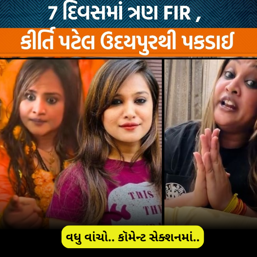 નમસ્કાર દર્શક મિત્રો હાલમાં સૌથી મોટા સમાચાર સામે આવી રહ્યા છે કે સોશિયલ મીડિયા ઇન્ફ્લુએન્સર કીર્તિ પટેલની ધરપકડ કરવામાં આવી છે જૂનાગઢ પોલીસ દ્વારા રાજસ્થાનથી કીર્તિ પટેલની ધરપકડ કરવામાં આવી છે અને કીર્તિ પટેલની સામે છેલ્લા એક અઠવાડિયામાં ત્રણ જેટલી પોલીસ ફરિયાદ નોંધાઈ છે થોડાક સમય અગાઉ જૂનાગઢના મૃગીકુંભમાં સ્નાન કરીને કીર્તિ પટેલ દ્વારા વિવાદ કરવામાં આવ્યો હતો અને આ પછી કીર્તિ પટેલ દ્વારા મહિલા પોલીસ કર્મી કેજે મોડ સાથે જબરજસ્ત બોલાચાલી કરવામાં આવી હતી