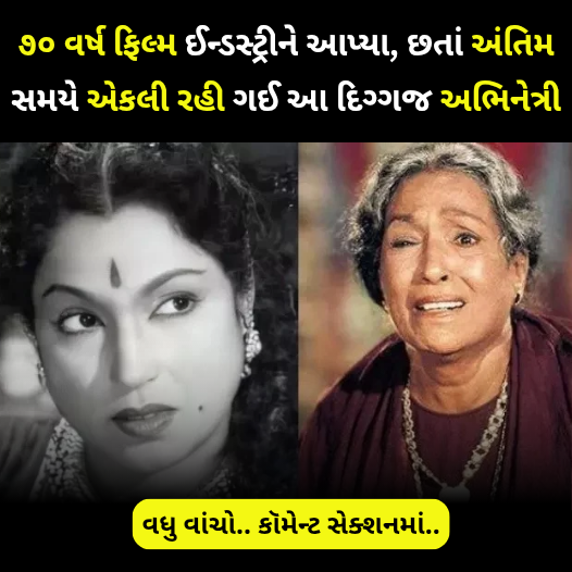 તેઓ આ દુનિયા છોડી ગયા છે.આ અભિનેત્રી બીજું કોઈ નહીં પણ આપણી ફિલ્મ ઇન્ડસ્ટ્રીના જાણીતા અભિનેત્રી લલિતા પવાર છે, જેમનું અવસાન ૨૪ ફેબ્રુઆરી ૧૯૯૮ ના રોજ થયું હતું. કહેવાય છે કે ૯૦ ના દાયકામાં જ્યારે લલિતા પવારનું કામ ઓછું થઈ ગયું હતું