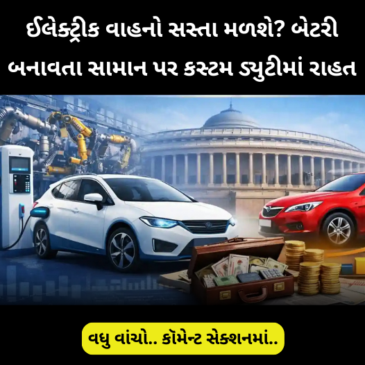 કેન્દ્રીય નાણામંત્રી નિર્મલા સિતારમને સંસદમાં રજૂ કરેલા વર્ષ 2026-27ના બજેટમાં મોટર વાહન ઉદ્યોગને મોટી રાહત મળી છે. ઈલેક્ટ્રીક વાહન(EV)નું ઉત્પાદન કરનારી કંપનીઓને બજેટમાં મોટી આશા હતી, જેને ધ્યાને લઈને સરકારે બેટરીમાં ઉપયોગ થતાં સામાન પર કસ્ટમ ડ્યૂટીમાં રાહત આપવાની જાહેરાત કરી છે. આ સાથે હવે ઈલેક્ટ્રીક વાહનોની કિંમતમાં ઘટાડો થવાની સંભાવના છે.