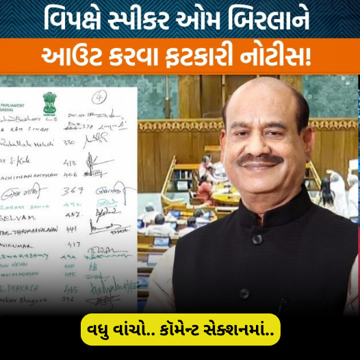 પાર્થ સંસદનું નીચલું ગૃહ લોકસભા સત્તા પક્ષ એનડીએ અને વિપક્ષ ઇન્ડી અલાયન્સ વચ્ચે યુદ્ધનું મેદાન બની ચૂક્યું છે અને હવે વિપક્ષના 119 સાંસદો દ્વારા લોકસભાની રૂલ બુક એટલે કે રૂલ્સ ઓફ પ્રોસીજર એન્ડ કન્ડક્ટ ઓફ બિઝનેસના નિયમ 94સી અંતર્ગત લોકસભા સચિવાલય અને લોકસભા મહાસચિવ ને નોટીસ આપવામાં આવી છે આમ વિપક્ષ સ્પીકર ઓમ બિરલાની સામે અવિશ્વાસનો પ્રસ્તાવ લાવવા માટે અડક છે વિપક્ષનો આરોપ છે કે રાહુલ ગાંધીને રાષ્ટ્રપતિના અભિભાષણ પછી જે ધન્યવાદ પ્રસ્તાવ લાવવામાં આવ્યો હતો તેની પર બોલવા નહોતા દેવામાં આવ્યા લોકસભાના કોંગ્રેસના ડેપ્યુટી લીડર ગૌરવ ગોગઈ દ્વારા