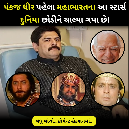 પરંતુ શું તમને ખબર છે કે પંકજ ધીર પહેલાં પણ મહાભારત સીરિયલમાં કામ કરનારા અનેક કલાકારો હવે જીવંત નથી? ચાલો જાણીએ એવા કયા કલાકારો હતા જેમણે આપણને હંમેશ માટે અલવિદા કહી દીધી.સૌપ્રથમ વાત કરીએ નંદાનું પાત્ર ભજવનારા રસીક દવે વિશે. તેમનું 29 જુલાઈ 2022ના રોજ કિડની ફેલ થવાથી અવસાન થયું હતું.તે પછી વાત કરીએ ભક્ત હનુમાનનું પાત્ર ભજવનારા દારા સિંહની. દરેકના દિલમાં સ્થાન બનાવનાર દારા સિંહનું 2012માં 83 વર્ષની ઉંમરે અવસાન થયું હતું.આ યાદીમાં ગુફી પેન્ટલનું નામ પણ સામેલ છે, જેમણે શકુની મामाનું પાત્ર ભજવ્યું હતું. ગુફી પેન્ટલનું 2023માં અવસાન થયું હતું.