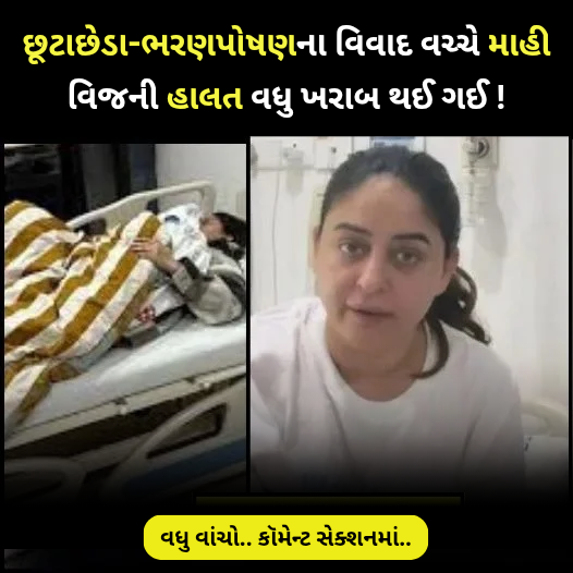 છૂટાછેડા અને 5 કરોડના ભરણપોષણની અટકળો વચ્ચે માહી વિજ હોસ્પિટલમાં દાખલ થઈ. જય ભાનુશાળીના તૂટવાથી લગ્નજીવન દરમિયાન તેમનું સ્વાસ્થ્ય બગડ્યું. સ્વાસ્થ્ય અપડેટ સામે આવ્યું છે. માહીના સ્વાસ્થ્ય વિશે એક મોટો ખુલાસો થયો છે. ચાહકો ચિંતિત છે. હોસ્પિટલનો એક ફોટો વાયરલ થયો છે. જેમ તમે બધા જાણો છો, પ્રખ્યાત ટીવી અભિનેત્રી માહી વિજ આ દિવસોમાં તેના અંગત જીવનને કારણે હેડલાઇન્સમાં છે. પતિ જય ભાનુશાળી સાથેના સંબંધોમાં તિરાડ પડવાના અહેવાલો ઘણા સમયથી ફરતા થઈ રહ્યા છે.